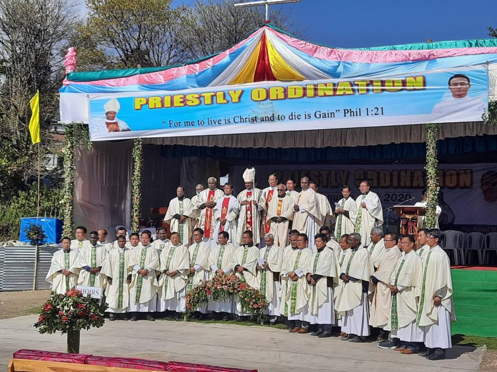 Dimapur 18 Jan 2020: Dn. Angou Francis is ordained a priest by Rt. Rev. James Thoppil DD, the bishop of Kohima, on 18 January 2020 at Holy Cross Parish, Dimapur. The beautifully organised programme was attended by thousands of people from Holy Cross Parish and his own ancestral village in Manipur.